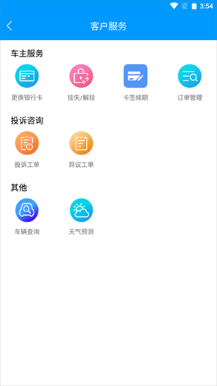 2、在出行页面,点击客户服务,您可以进行车主服务、投诉处理等操作。
