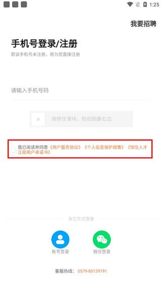 3、选择后进入登录界面,输入手机号注册登录,记得勾选下方的用户协议;