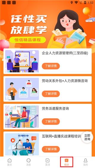 9、进入培训板块,这里提供了软件精心挑选的学习课程;