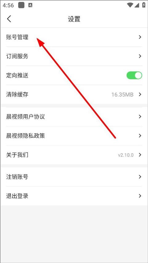 3、在设置页面,您可以查看订阅服务、推送设置等内容,点击“账号管理”;