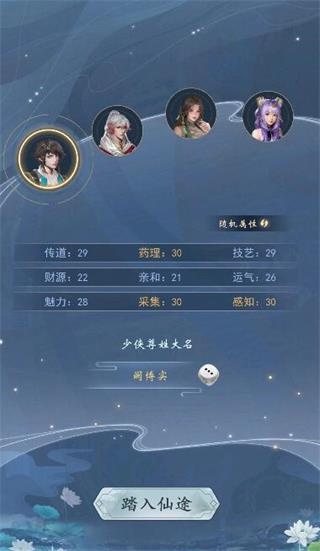 3、系统会随机生成属性,如财源、产和、运气等,接着输入角色名字,点击跳入仙途即可
