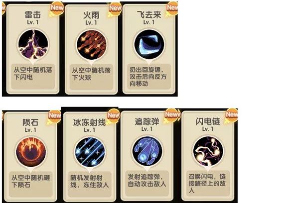 闪电链、追踪弹、冰冻射线、飞去来等技能是自动锁定敌人的技能。前期因其大范围效果而较为好用,但在后期伤害稍显不足,玩家可根据实际情况选择使用。冰冻射线具备冰冻效果,能在某些情况下起到控制作用。