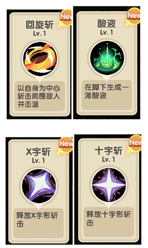 斩击附带群体击退效果,适合前期开荒,但需要面对敌人来释放技能。
