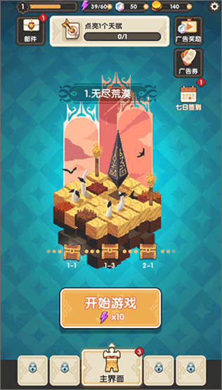 1、进入游戏后,点击“开始游戏”即可开始冒险;