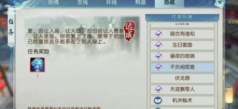 河阳货郎处购买花雕酒是触发不负相思意隐藏任务的核心前提,进入庙会地图会自动获得任务道具"伞"。第一天在庙会坐标(24,4)找到NPC笙染,使用花雕酒触发醉酒状态后与她对话使伞消失,若未成功可尝试其他NPC点:庙会(21,3)、小池镇(106,41)、青云山况子衿(109,35)或逍遥涧如歌(105,93),每天仅能激活一次。